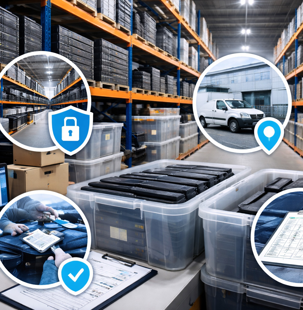 Full support from collection, secure storage, and re-delivery with complete asset tracking.